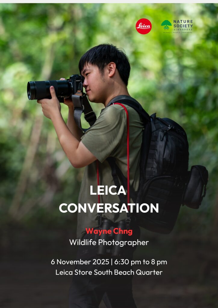 As part of the pre-event activities for the Singapore Bird Race 2025, Join us for an inspiring session with Singapore wildlife photographer Wayne Chng (@waynephotojournal) as he shares his journey of capturing the untamed beauty of nature across Singapore and Asia. In this intimate conversation, Wayne unveils the unseen stories behind his work — the challenges, the quiet triumphs, and the moments of patience that bring each image to life.